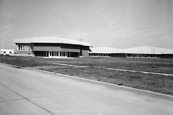 Located in the St. Boniface School Division No. 4, the school was designed by the Winnipeg architectural firm of Green Blankstein Russell and Associates. The school’s hexagonal shape is unique and is one of few such buildings in North America. Built at a cost of $680,000, the school opened for the Fall Term of 1960. It was officially opened on 15 September 1960 by Minister of Education Stewart McLean.