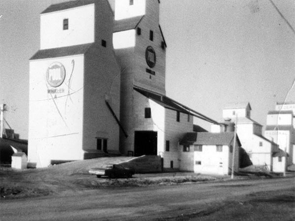 A wooden grain elevator at Winkler, on the CPR La Riviere Subdivision, was built around 1912 by the Lake of the Woods Milling Company. Sold to Ogilvie Flour Mills in late 1954, it was re-sold to Manitoba Pool in 1959. Six years later, a new crib elevator was built beside it. At that time, the older elevator was converted into an annex until it was removed. Eventually, operation of the elevator was combined with the nearby Pool B under a single agent. This elevator has since been demolished.