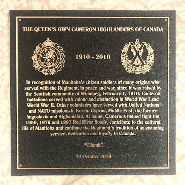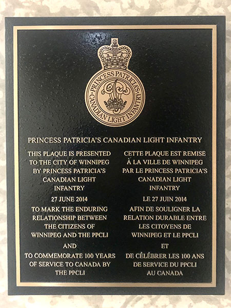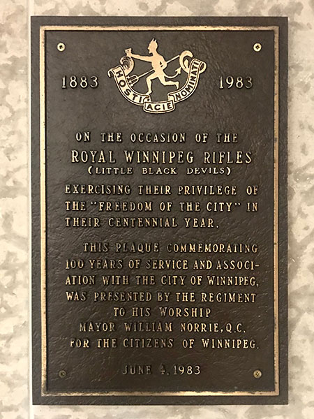 Royal Winnipeg Rifles (Little Black Devils), 100th anniversary “Freedom of the City” Plaque (September 2022)