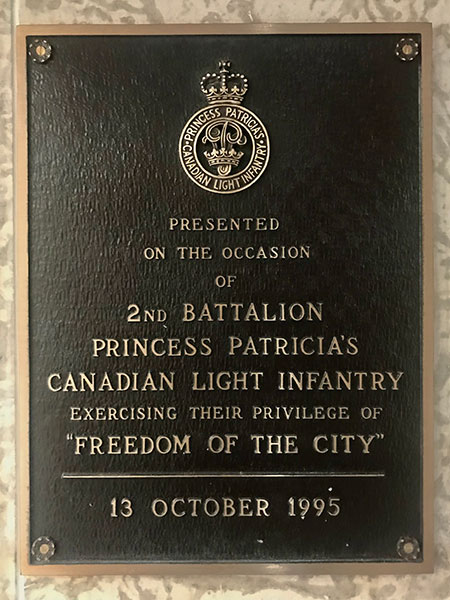Second Battalion Princess Patricia’s Canadian Light Infantry “Freedom of the City” Plaque, 1995 (September 2022)