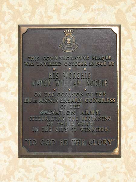 Salvation Army, 100th Anniversary in Winnipeg Plaque (2009)