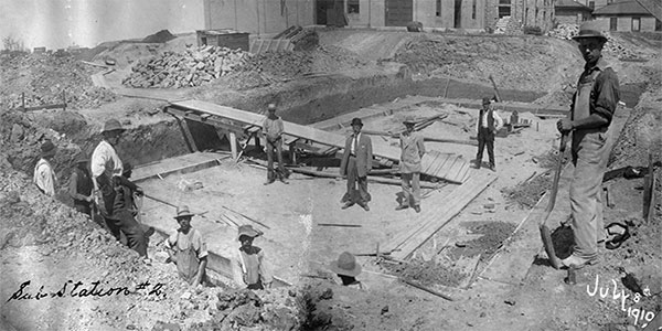 Foundation work on the Winnipeg Hydro Substation No. 2 (July 1910)