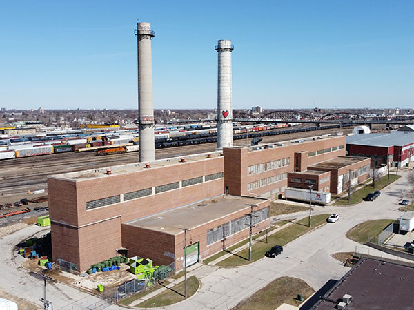 Aerial view of the former Winnipeg Incinerator (April 2021)