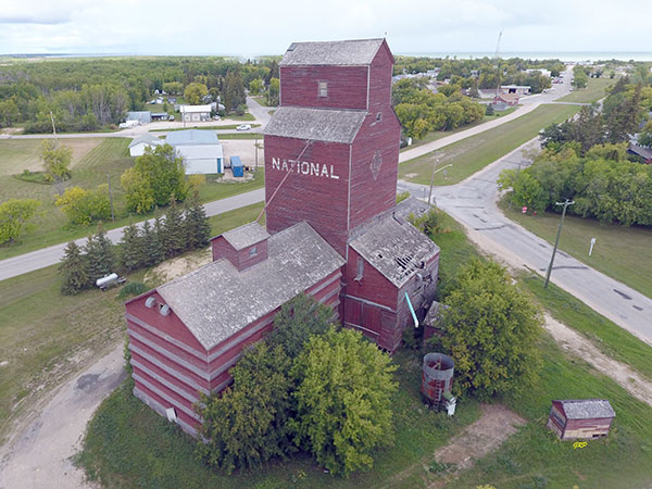 A wooden grain elevator at Winnipegosis, in what is now the Rural Municipality of Mossey River on the former CNR Winnipegosis Subdivision, was built in 1950 by National Grain. Around 1956, its initial 55,000-bushel capacity was increased to 85,000 bushels by the construction of a balloon annex on its southern side. Sold to Cargill Grain in 1975, it was closed in April 1981. The building was abandoned for many years before being demolished in March 2021.