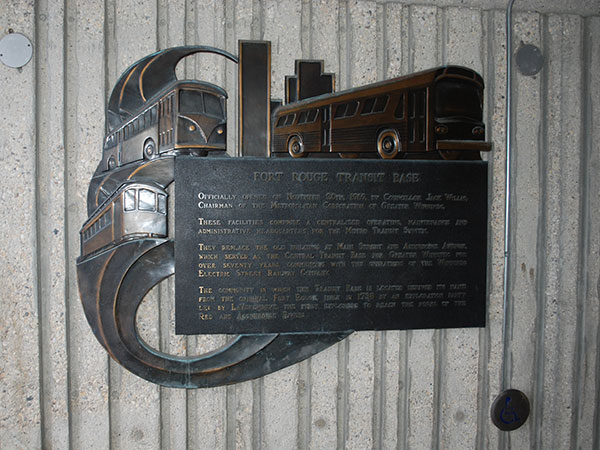 City of Winnipeg Transit System Fort Rouge Transit Base Plaque (January 2016)
