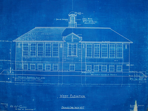 Blueprint of west elevation for Woodhaven School (1922) by Gilbert Parfitt