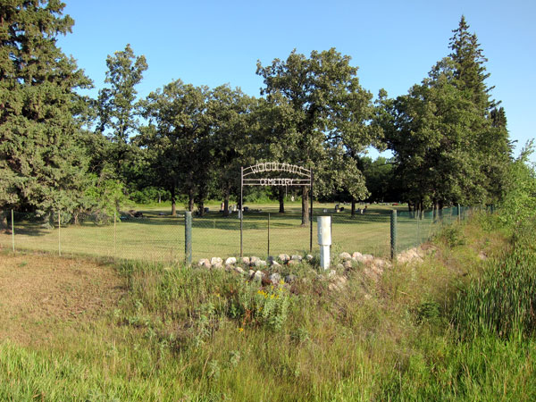 This cemetery at SE16-14-2W in the Rural Municipality of Woodlands was the original site of St. George's Anglican Church, constructed in 1877 on land donated by David Porteous. Between 1896 and 1897, the original log building was replaced with a wood frame structure. Destroyed by fire on 6 June 1945, the congregation purchased an unused church at Rosser and moved it to Woodlands in August 1947. The new church was opened officially on 20 June 1948.