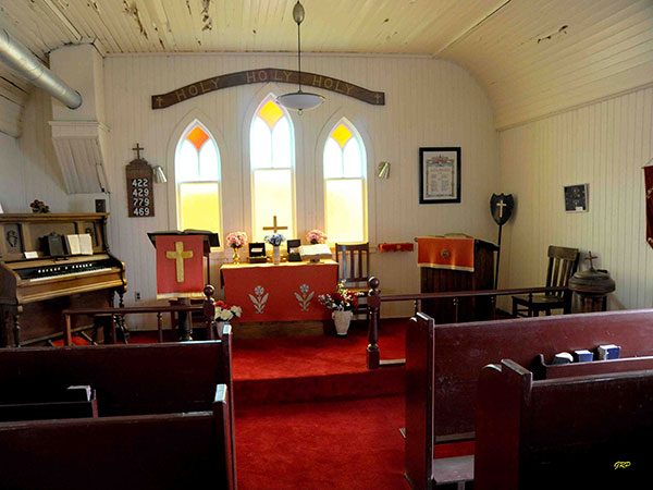Parishioners of this church donated the building, erected in 1910, to the museum in 1982. Worship services are held in it occasionally.