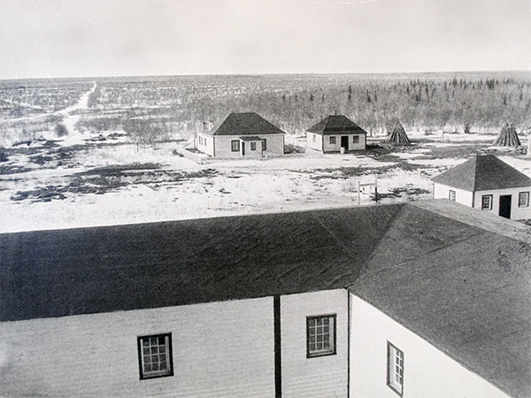 View of York Factory School (centre) from the roof of the Depot Building, next to the former district manager’s residence (left) (1931) by A. Harkes
