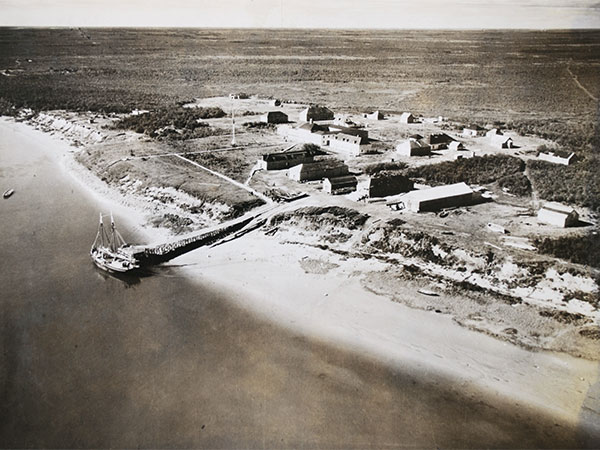 Aerial view of the York Factory Depot Building and other outbuildings (c1930) by Royal Canadian Air Force photographer