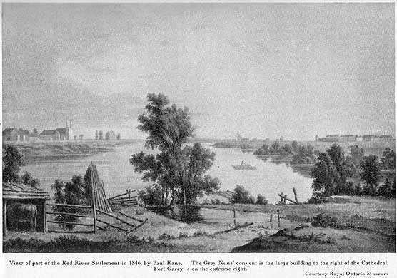 The caravans from Minnesota came in by way of St. Norbert on the west side of Red River. They halted on the south west point where the Red River and the Assiniboine meet, opposite the present St. Boniface Hospital. In the old days the Sisters always watched for the caravans coming in. When they saw Grey Nuns they went over by canoe and brought them home to St. Boniface.
