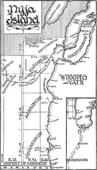 The colony-site, eventually chosen for them by their own representatives, was north of the Manitoba boundary (as it was at that time) and formed a strip along the west shore of Lake Winnipeg, six townships in length and extending 12 miles inland. It also included the whole of Big Island. The area was then part of the Northwest Territories, but later became known as the District of Keewatin. The land was covered with trees and shrubs, with natural clearings and marshes between. It had been selected because it offered building materials, fish and game to augment the food supply, together with a navigable waterway. That it was heavy land to work and offered only subsistence living because of distance from markets, does not seem to have been considered.