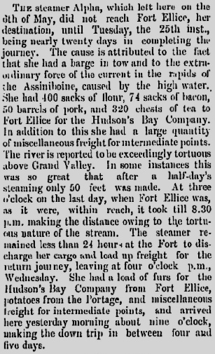 Winnipeg Daily Times, May 27, 1879 & The Manitoban, June 2, 1882