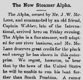 Winnipeg. She will ply on the Red River.” 05/02/85 and a