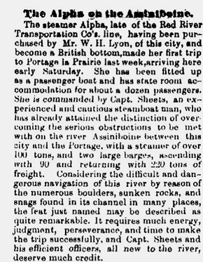 The use of steamboats in western Manitoba,