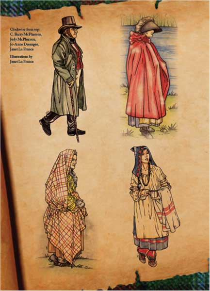 This 100-page, full-colour book provides extensive details on the clothing worn by people living at the time of the Red River Settlement. Written by the McPhersons, with illustrations by artist Janet La France, this book is a must-have for anyone interested in daily life in early 19th century Rupert’s Land.