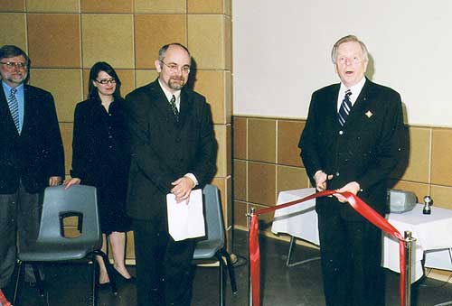 Lt.-Gov. John Harvard cuts ribbon with MHS President Gordon Goldsborough