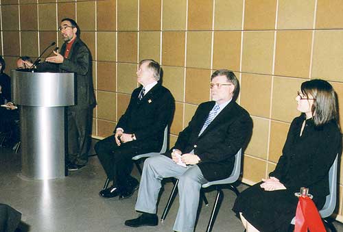 Architect Wins Bridgman speaks, with Lt.-Gov. John Harvard and Dalnavert management committee co-chair Jim Blanchard and Stephanie Middagh looking on