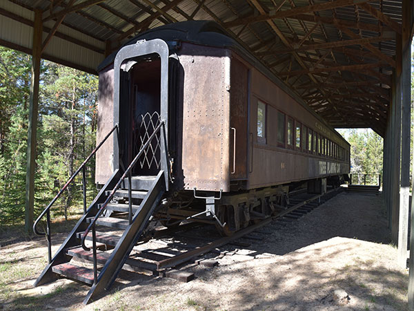 RM of ReynoldsThis 75-foot-long railway car travelled over 263,000 miles, and was visited by over 1.5 million people, in the course of its life cris-crossing the Canadian prairies as the Tree Planting Car. An initiative of the Canadian Forestry Association, supported by the two major railways, its purpose was to promote the planting of trees. Its final year of operation was 1973, after which it was donated to the Manitoba Forestry Association and moved to the now-closed Sandilands Forest Discovery Centre. Plans to relocate the historic car to another site are constrained by the high cost of moving it.