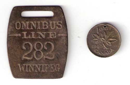 During the summer of 2009, a brass luggage tag, believed to have been issued in the late 1870s by the North West Omnibus Company of Winnipeg, was discovered by a collector near Anaconda, Montana. It is thought to be the only existing tag of its kind. The collector wants to see the tag returned to Canada so he invites collectors and museums who may be interested in purchasing it to contact him: