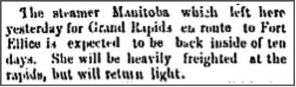 negotiate the rapids and become the first steamer to reach Fort Ellice.