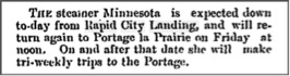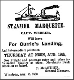 By the end of 1880 Currie’s Landing (also called “Rapid City Landing”)