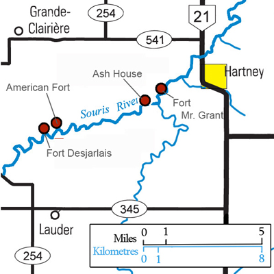 In 1824 Cuthbert Grant built Fort Grant on the Souris River, about two