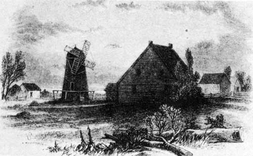 For many years one windmill, erected sometime during the early 1830s by the settlement’s founder, Cuthbert Grant, ground flour for the Métis settlement of Grantown (St. Francois-Xavier). Grants mill remained the most westerly one in the Red River country until the early 1850s. At that time English-speaking half-breeds from St. Andrew’s and St. Paul’s began to migrate westwards along the Assiniboine and settle at Portage la Prairie, where a windmill was erected by John Hudson soon after the commencement of farm settlement. [34] Hudson’s mill continued to grind until 1873, when it was pulled down and its timber used in the construction of a blacksmith’s shop. [35]