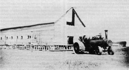 A common sight in Blumenort in 1910 as farmers dismantled the village, moving buildings to their own quarter sections.