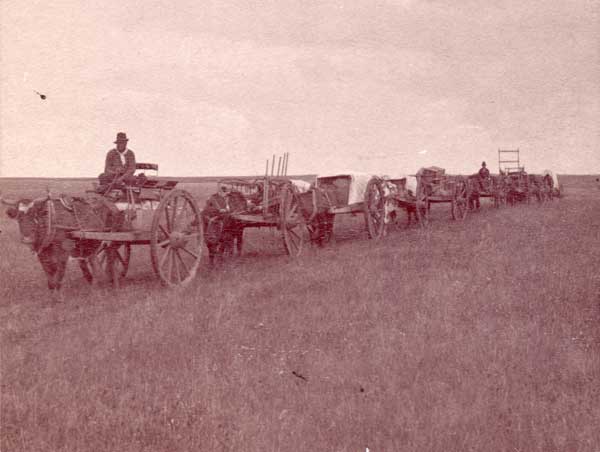 Métis cart train, circa 1870. Photo by F. J. Haynes.