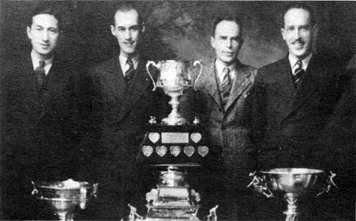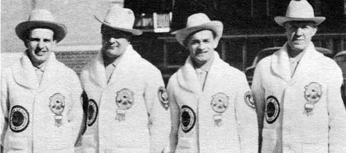 Ab Gowanlock’s Glenboro Curling Club rink, Brier champions in 1938. Left to right, W. D. McKnight, second, “Bung” Cartmell, third, Ab Gowanlock, skip, E. R. “Tommy” McKnight, lead.