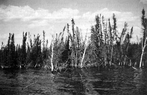 Post-impoundment shoreline along Southern Indian Lake, 1982.