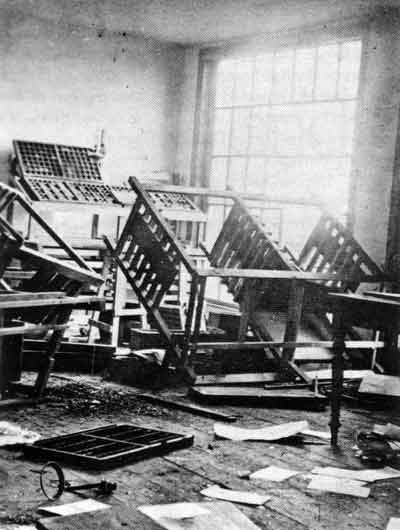 Schultz had inaugurated the “reign of terror” by invading the offices of the New Nation on September 6th with three companions and assaulting Thomas Spence, the editor. [23] As a result of damage done to the press by Schultz or his accomplices before their departure the New Nation was unable to resume publication, and Schultz’s News-Letter had a press monopoly until the Manitoban appeared in mid-October. [24] A study of News-Letter issues of September and October shows the newspaper was not slow to try to ingratiate itself with the Volunteers. And reports in eastern newspapers prove that leaders of the Métis were deeply concerned about the number of people who were out on the plains and fearful of returning to their homes in the Settlement. [25]