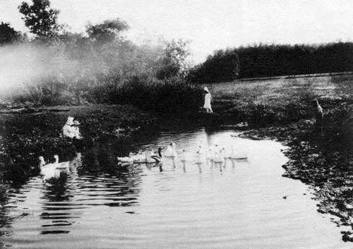 “Country life is both pleasant and attractive where places of sport and amusement are provided. Here is a bathing spot with spring boards from which to dive and steps down into the water.” Carman, 1916.