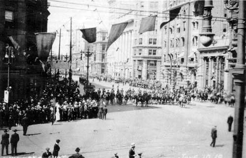 Winnipeg General Strike, 10 June 1919 looking north from Portage and Main.