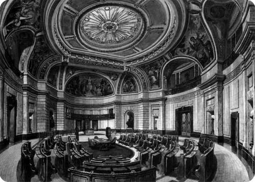 Interior of the Legislative Chamber of the Manitoba Legislative Building painted by Frank Simon, 1912, from The Urban Prairie.