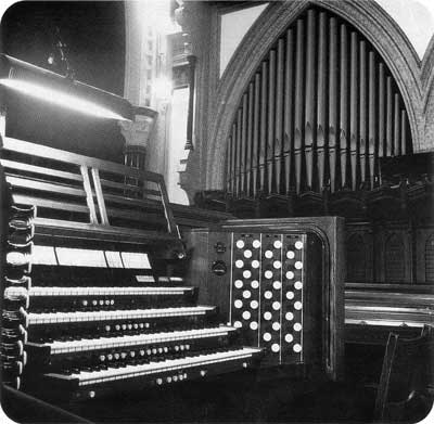 Holy Trinity Anglican Church, 1884. S. R. Warren & Son Organ, 1884, 1892. Canadian Pipe Organ Company, 1912. Casavant Freres Console, 1950.