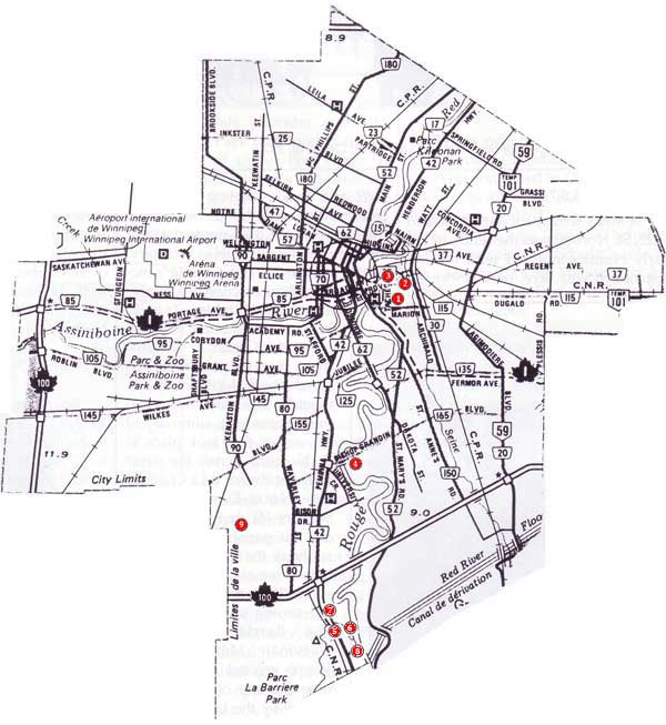 Many sites around the City of Winnipeg are associated with the events of 1869-70. The 16 sites high-lighted in this brochure are located at nine different venues. They include a variety of interpretive experienceshistoric buildings, statues, monuments and markers that will help you understand the progression of events that led to the creation of a new province. The sites are organized, as much as possible, in a circular route, designed to be visited in one day, or if one prefers, individually. Together they tell the story of the Red River Resistance.