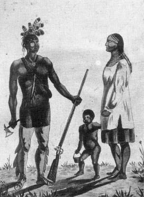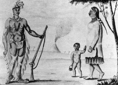 This watercolour, entitled “Indian Family,” by Peter Rindisbacher, was done between 1821 and 1823 and is a copy of an image by explorer Jonathan Carver (see below) whose book Rindisbacher must have seen while in Red River. The Rindisbacher image was taken to England by Rev. John West in 1823, and was brought back to Manitoba with West’s papers in 1956.