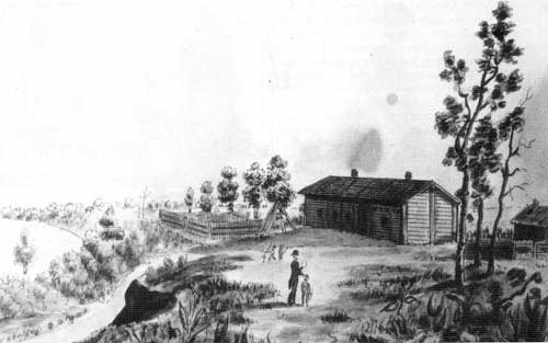 “Rev. John West’s home, Red River Settlement.” A watercolour by Peter Rindisbacher, 1823.