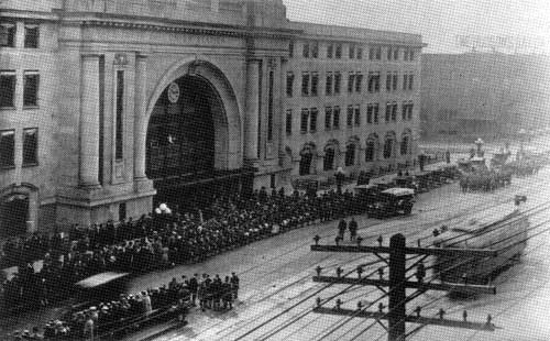 Returning World War I soldiers at Union Station, Winnipeg, 1919.