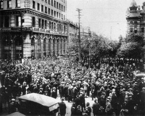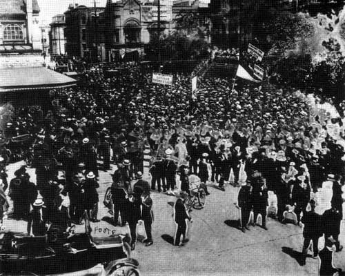 Striking workers and their supporters at City Hall, 21 June 1919.