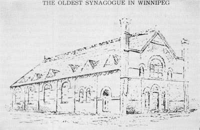 Sketch of the original Shaarey Zedek Synagogue which once stood at the corner of Henry Avenue and King Street, Winnipeg, no date.