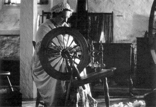 Costumed interpreter spinning wool at Lower Fort Garry in the 1970s: equating “heritage” with “history”.