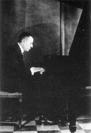 Rachmaninoff at the piano, circa 1930. When playing in public the Russian composer generally imparted an image of severe austerity.