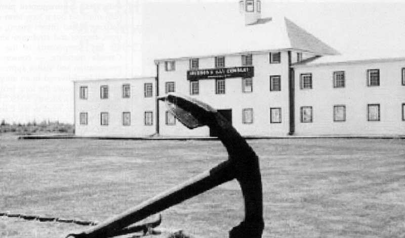 The front of the Depot building. The Depot is about 93 metres from the bank of the Hayes River. The bank erodes from 1 metre per year to 3 metres every 5 years. There are archaeological features between the Depot and the river.