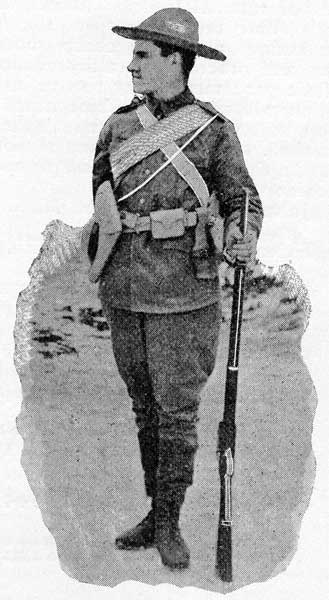 Alfred N. Daykin, a Wesley College student, left Canada for South Africa in March of 1900. Daykin’s decision to leave his studies to fight for the empire against the Boers was not criticised by the Vox Wesleyana. According to the paper, a meeting at the college “concluded with cheers for Mr. Daykin, Lord Strathcona, and the Queen … “. This depiction of Daykin is from the Vox Wesleyana of October 1900 and shows him in the uniform of the Strathcona’s Horse.
