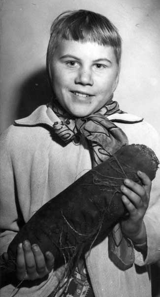 Giants and oddities of all kinds were a staple of the local newspaper. Here, 11- year old Shirley Hanslit holds a “slightly overgrown” winter radish weighing over 7 pounds. Portage Daily Graphic, 7 October 1952.