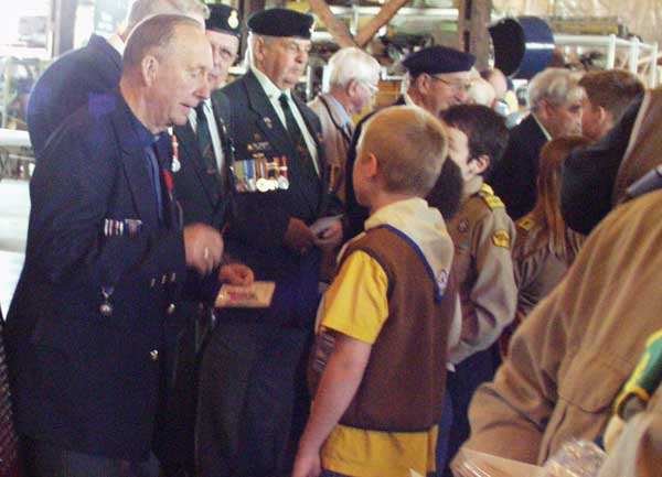 Scouts Canada youth present veterans with “Invitation to Remember” thank you crests at the plaque unveiling ceremony.