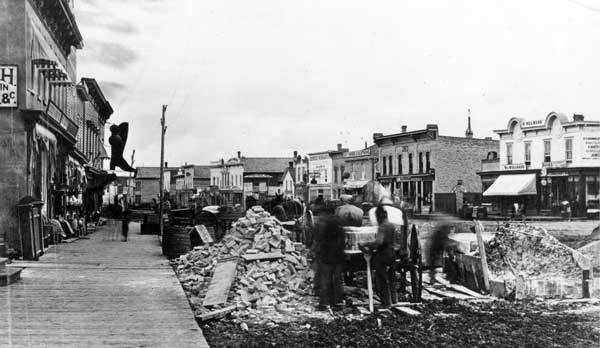 In the early spring of 1882 there were sales of Main Street property at high figures, both sellers and buyers being business men. The purchases were principally of good business sites and substantial buildings were at once erected. The Board of Works of the city had expended $49,202 on street improvements and sewers, so that it is seen the civic authorities were keeping pace with the times, but it was simply impossible to lay down sidewalks as quickly as new streets were built up, for what was bare prairie would in a fortnight be covered by a row of dwellings, and that likely at some distance from the nearest point reached by the sidewalk system.
